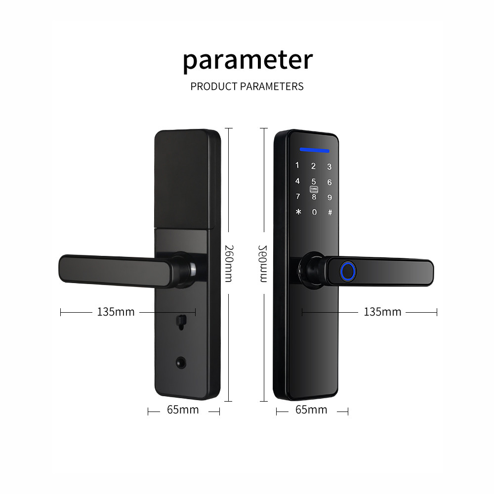 | Freischalten: | Tuya/TTlock/Zigbee und Passwort und Fingerabdruck und Karte und Schlüssel | Türstärke: | 40 bis 110 mm |