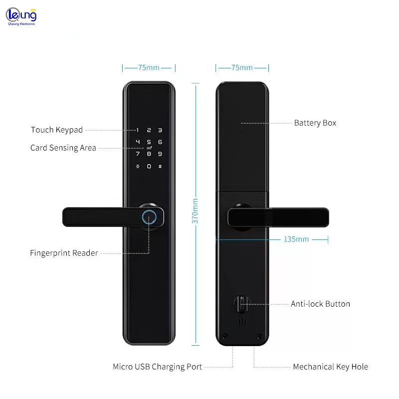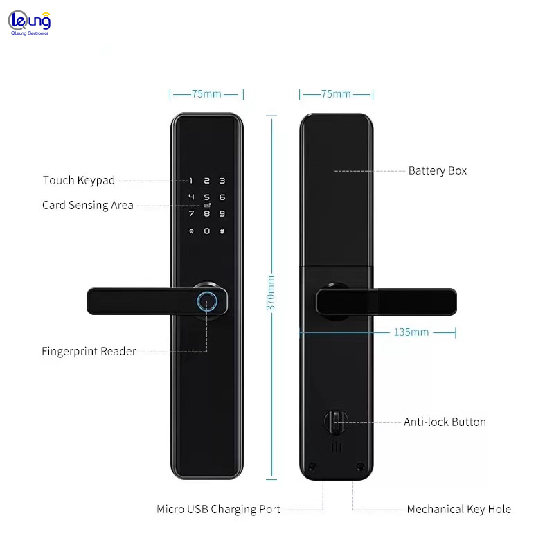 | Entsperrmethoden | Tuya WiFi App / TTlock App, Passwort, Fingerabdruck, Karte, Schlüssel, USB-Anschluss |