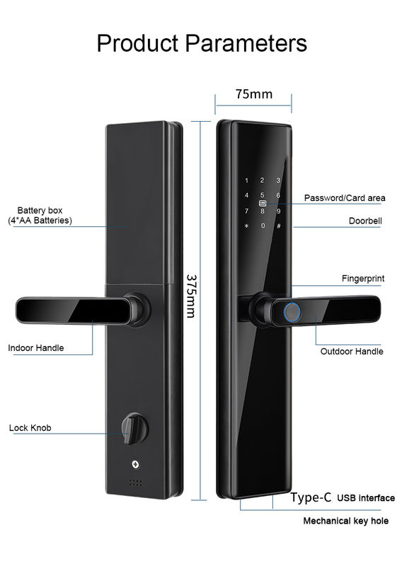 | Hervorheben: | 6 Möglichkeiten zum Schließen der Smart Door Lock,8 Sprachen Digitaler Türschloss,38-100 mm Türdicke Biometrisches Türschloss |
