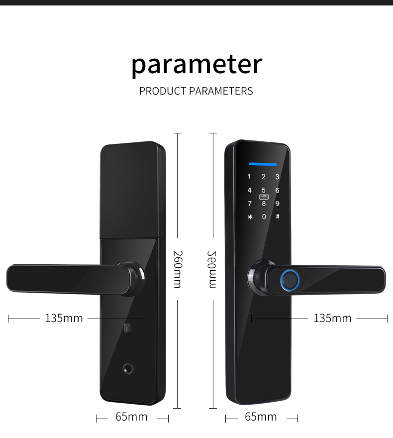 Sicherheit und Management:Alarm gegen Eindringlinge/gewaltsame Öffnung, Passwortfehlerverriegelung, Türverweigerung/Erinnerung an das Entsperren, automatisches Versperren, Cloud-/lokale Speicherung der Entsperrungsdatensätze;Handelsmodelle unterstützen hierarchische Berechtigungen und Anwesenheitsberichte.